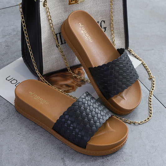 Sandalias Deslizantes De Punto De Aumento De Altura