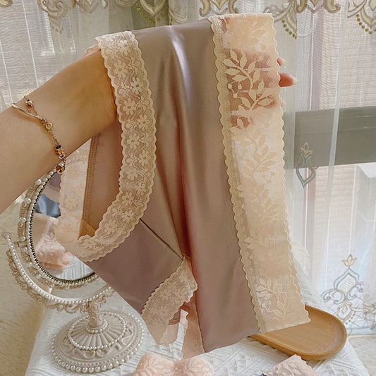 Satén Bragas De Seda De Hielo De Gran Tamaño Bragas De Alta Gama De Encaje De Cintura Media Para Mujer