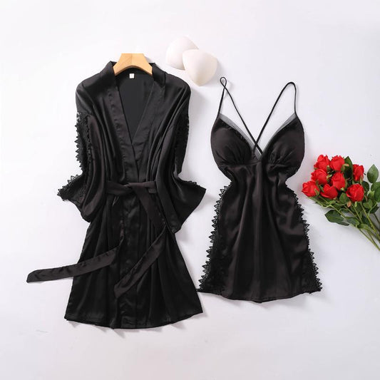 Traje De Dos Piezas Fino De Seda De Camisón De Encaje Nuevo De Primavera 2021
