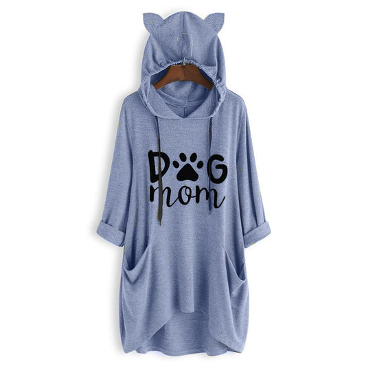 Vestido De Suéter De Otoño / Invierno, Suéter Con Capucha, Vestido De Mujer De Gran Tamaño Suelto De Manga Larga Estampado