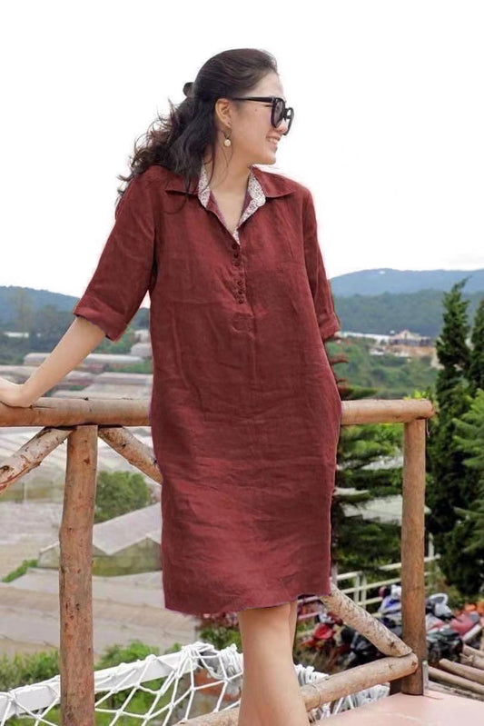 Vestido De Lino De Algodón Con Cuello En V De Moda Para Mujer