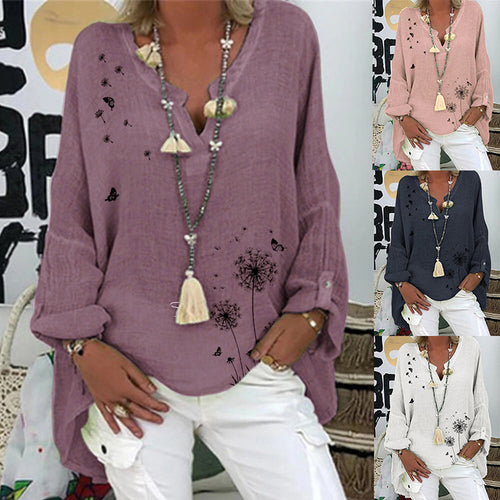 [W-Ropa] Camiseta Elegante Y Holgada De Algodón Y Lino Con Cuello De Pico -