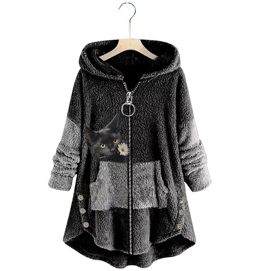 Ropa con bolsillo de cuello suelto manga larga para mujer