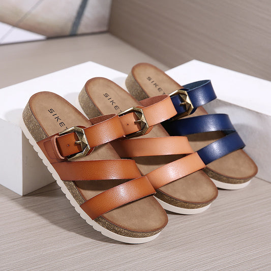 Sandalias Cómodas Antideslizantes Con Hebilla Metálica Y Suela De Madera
