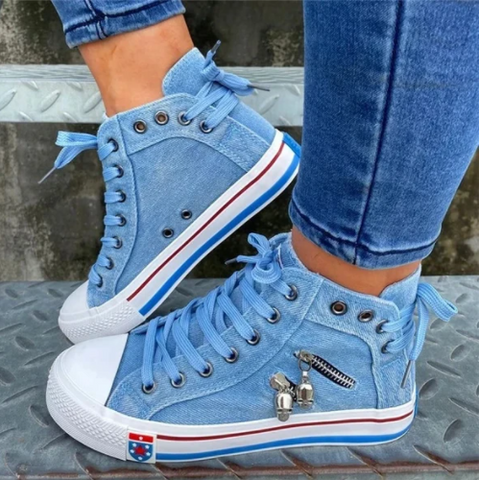 Zapatillas De Lona Con Diseño De Cordones Y Espalda Alta De Mezclilla Para Mujer