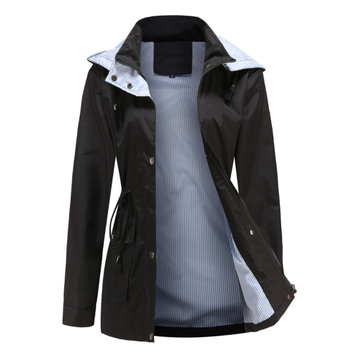- DISEÑO → Mangas largas con capucha, cordón ajustable. Chubasquero con botón y cremallera en la parte delantera. Forrado y repelente al agua con 2 bolsillos con solapa en la parte delantera