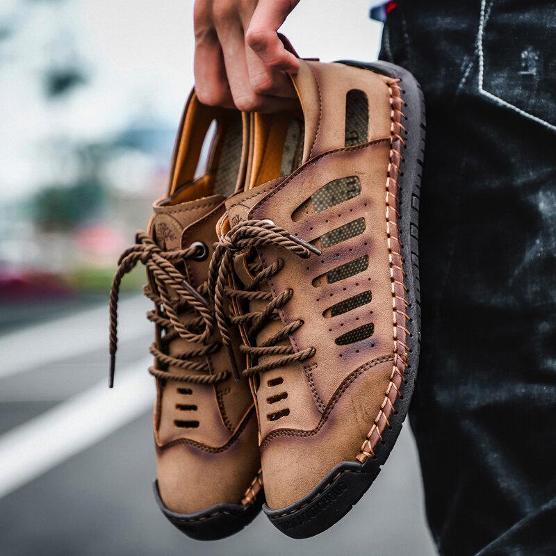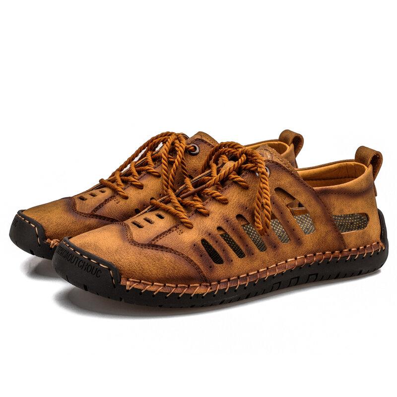 Hombres Punta cerrada Agujero de costura a mano Cuero Vestido Sandalias