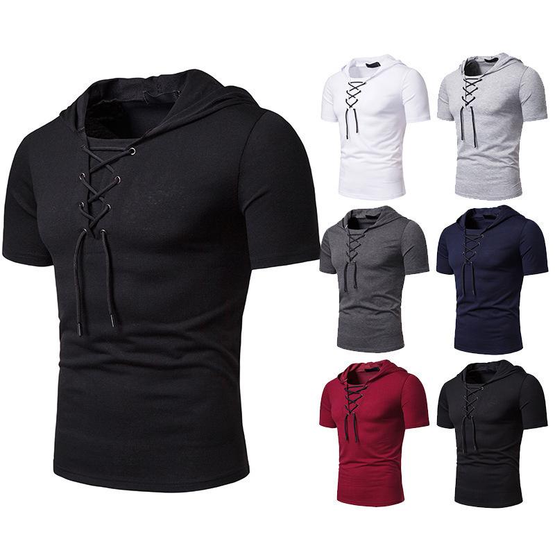 Camiseta de manga corta para hombre con capucha y correa suelta ropa de hombre