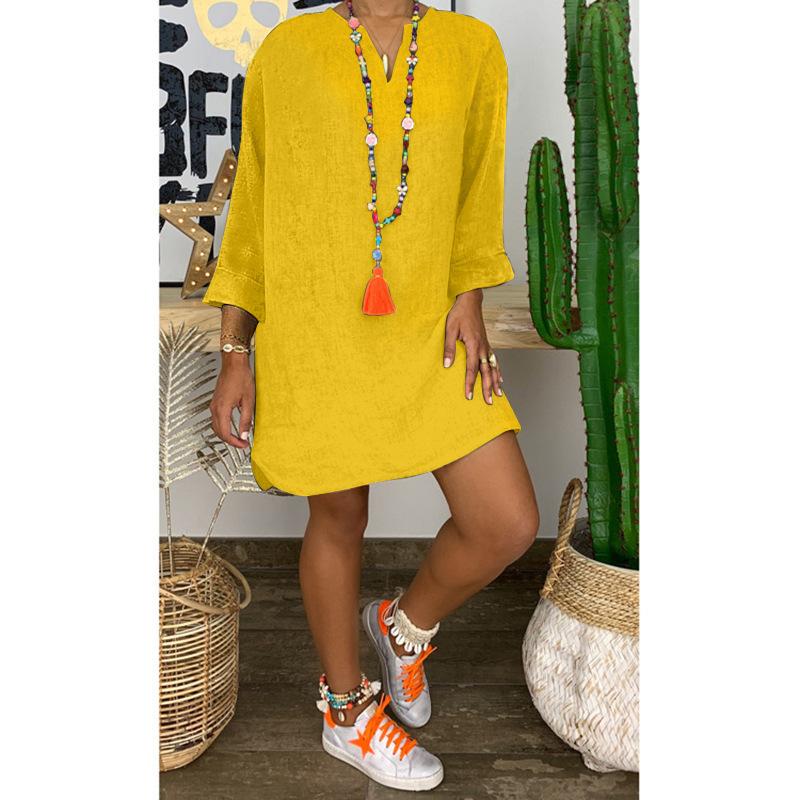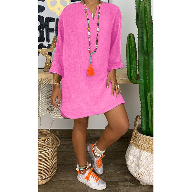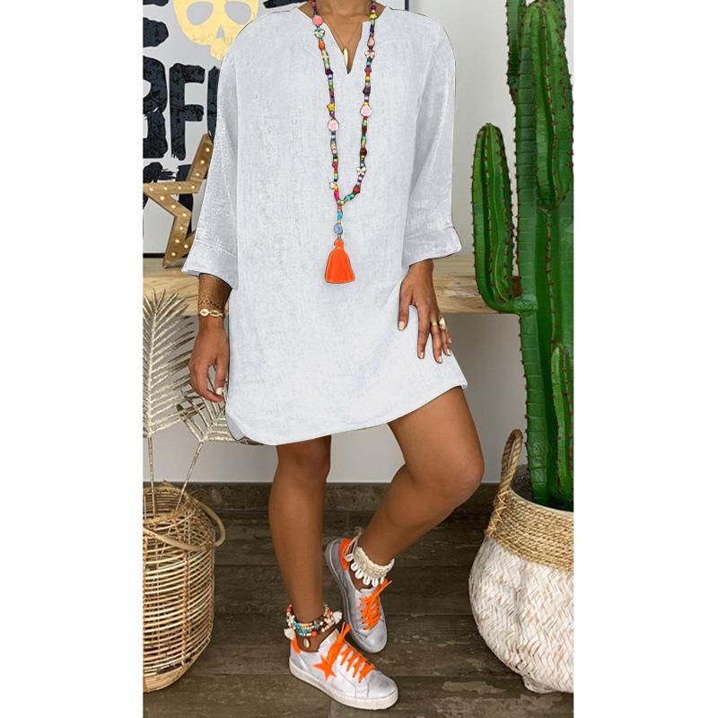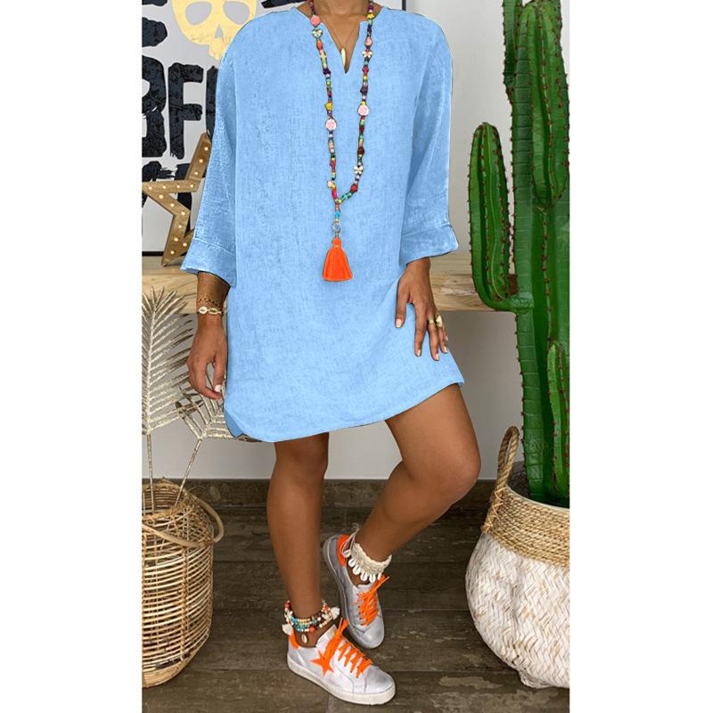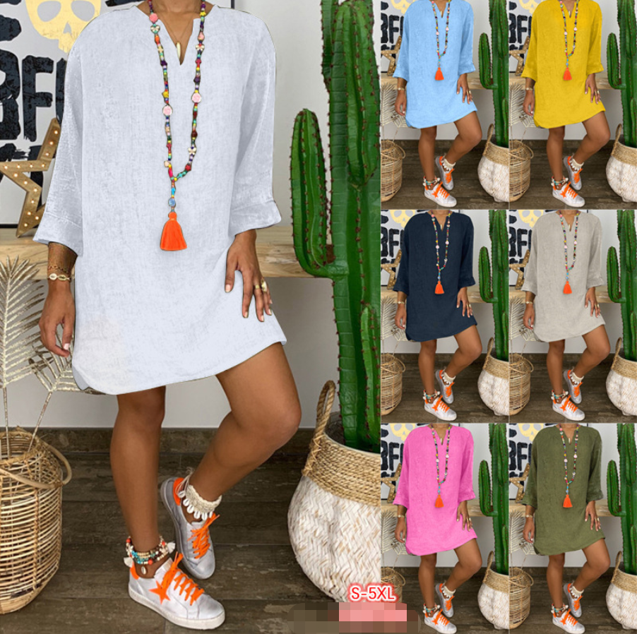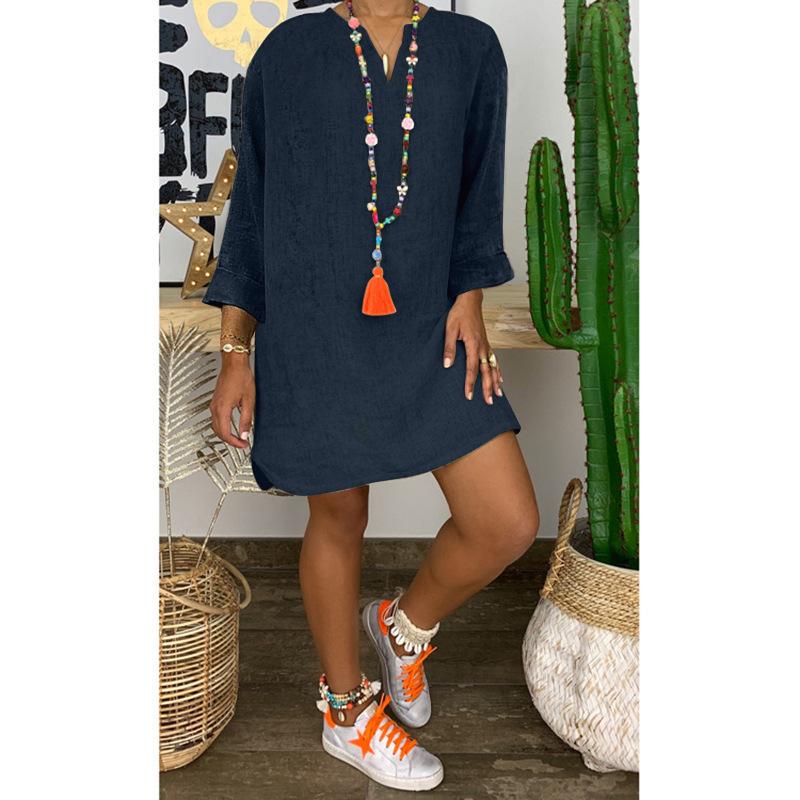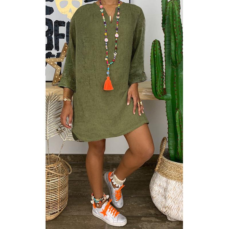 Falda holgada de algodón y lino de manga larga