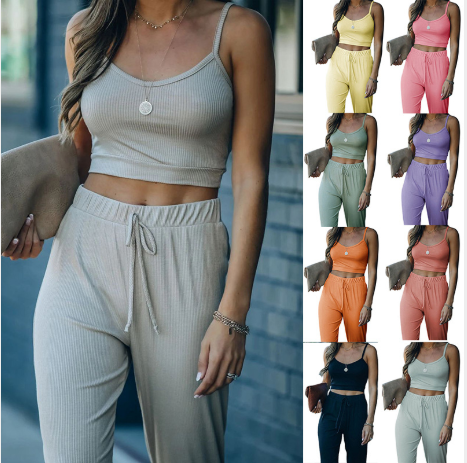 Cabestrillo corto de color puro con pantalón deportivo y traje de ocio de dos piezas