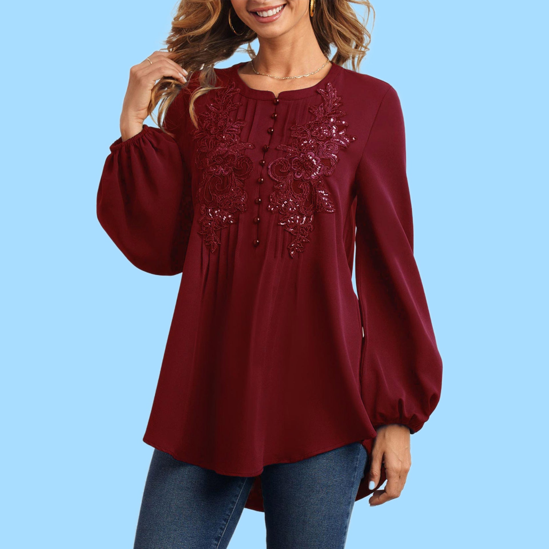 La blusa es cómoda y transpirable, presenta una manga larga de farol y un exquisito bordado en la parte delantera del pecho, lo que te hace más elegante y elegante. Va bien con todos los fondos. Trajes para cualquier ocasión.