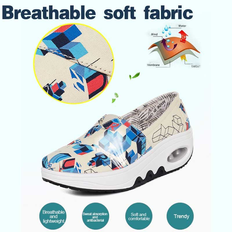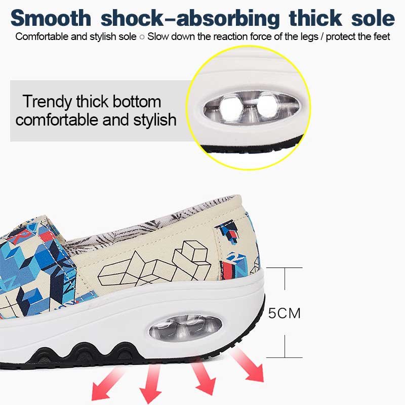 Teníamos la intención de hacerlo suave con una plataforma única y un diseño de cuña que te hará sentir como si estuvieras caminando en el aire. Reducirá cualquier dolor de pie al máximo al estar de pie o caminar durante un largo período de tiempo.