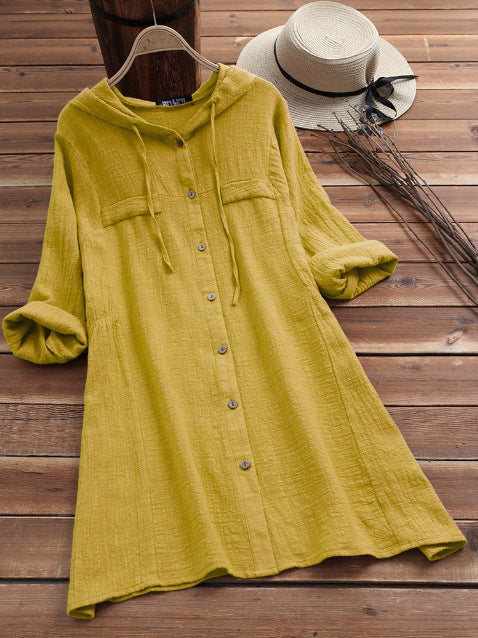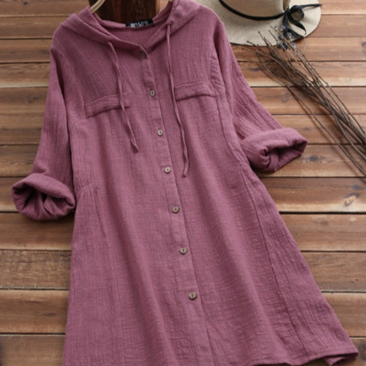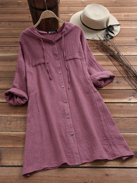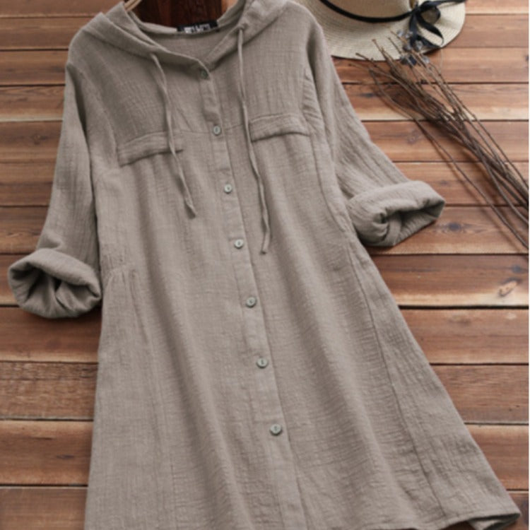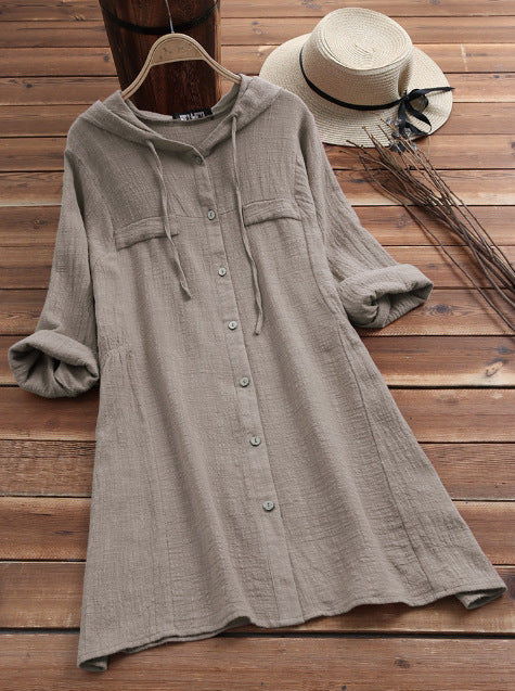 Abrigo Mediano De Algodón Y Lino Con Capucha, Manga Larga Y Talla Grande