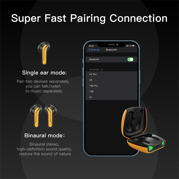Cool Light Effects y modos duales: auriculares Bluetooth con iluminación RGB genial diseñada en los auriculares y el estuche de carga para resaltar la atmósfera de juego.