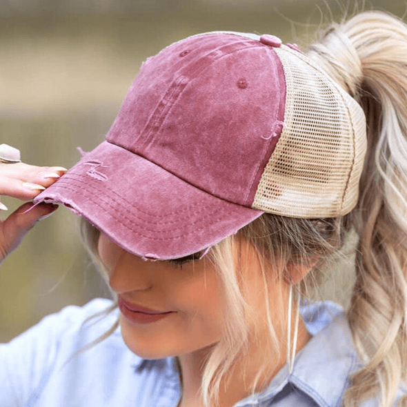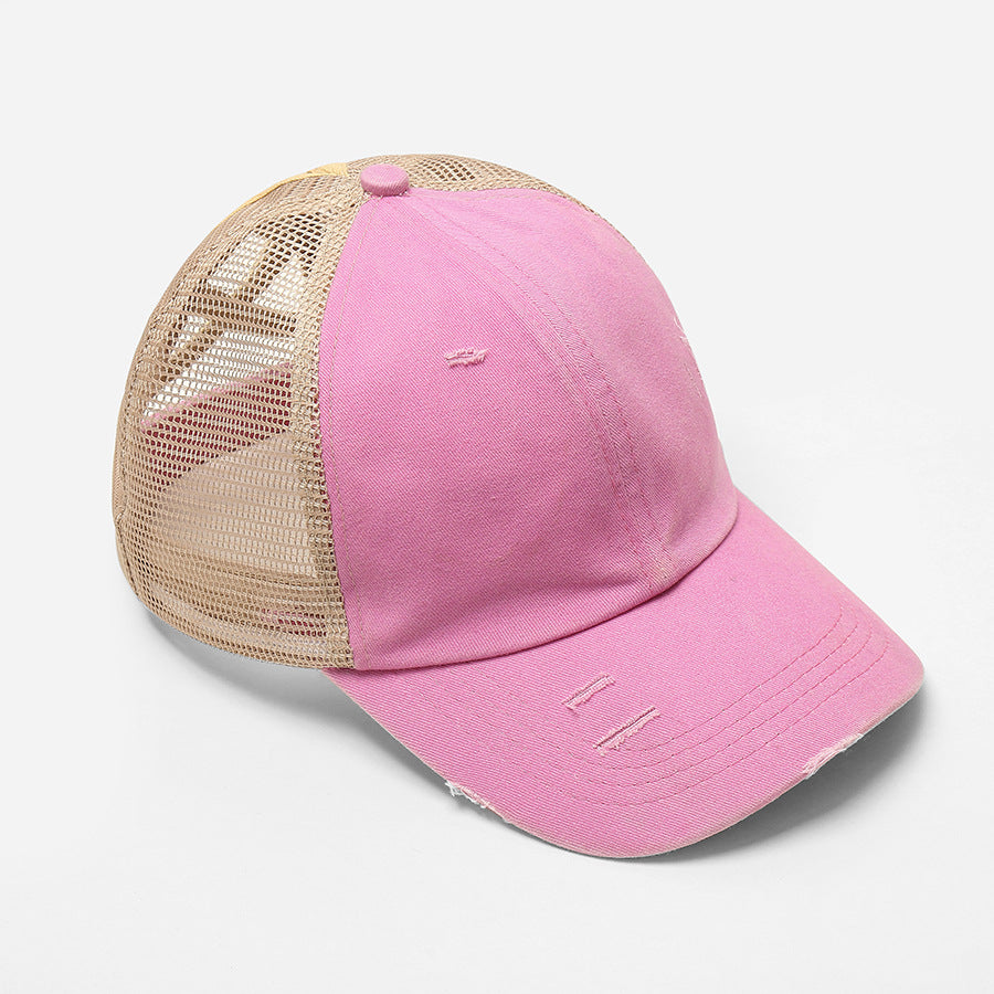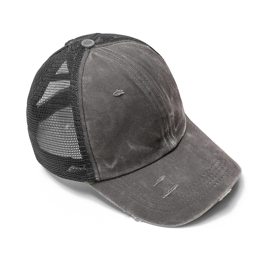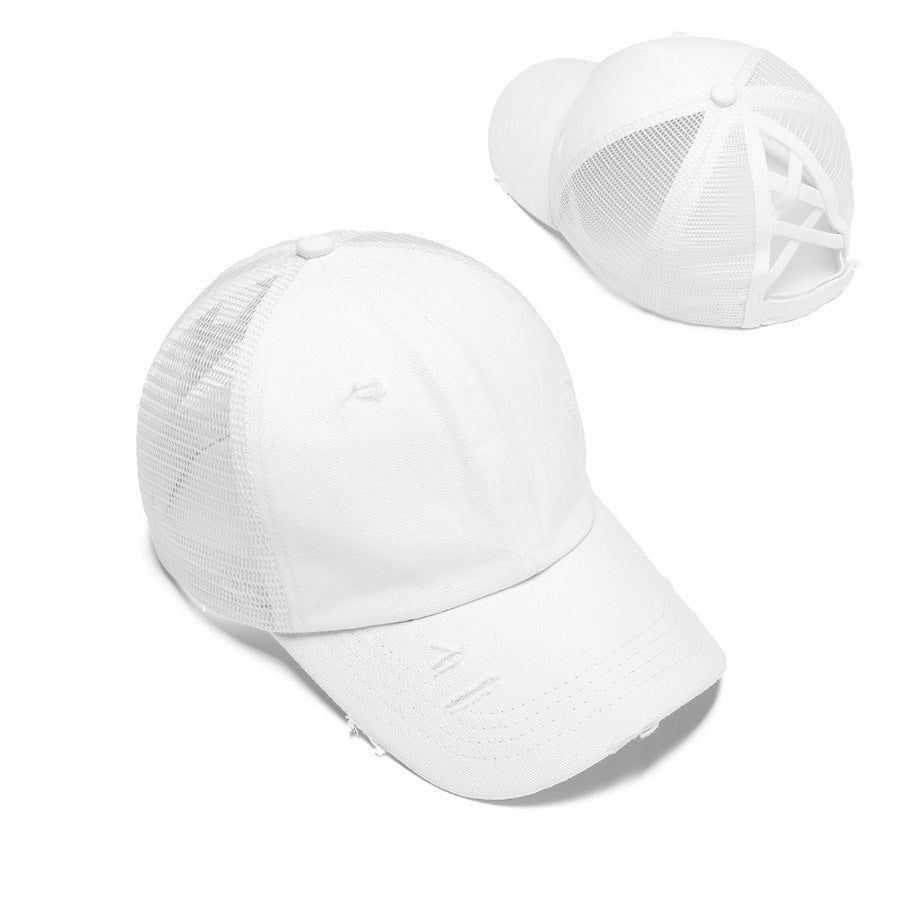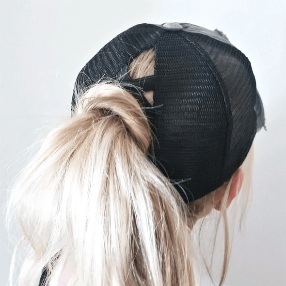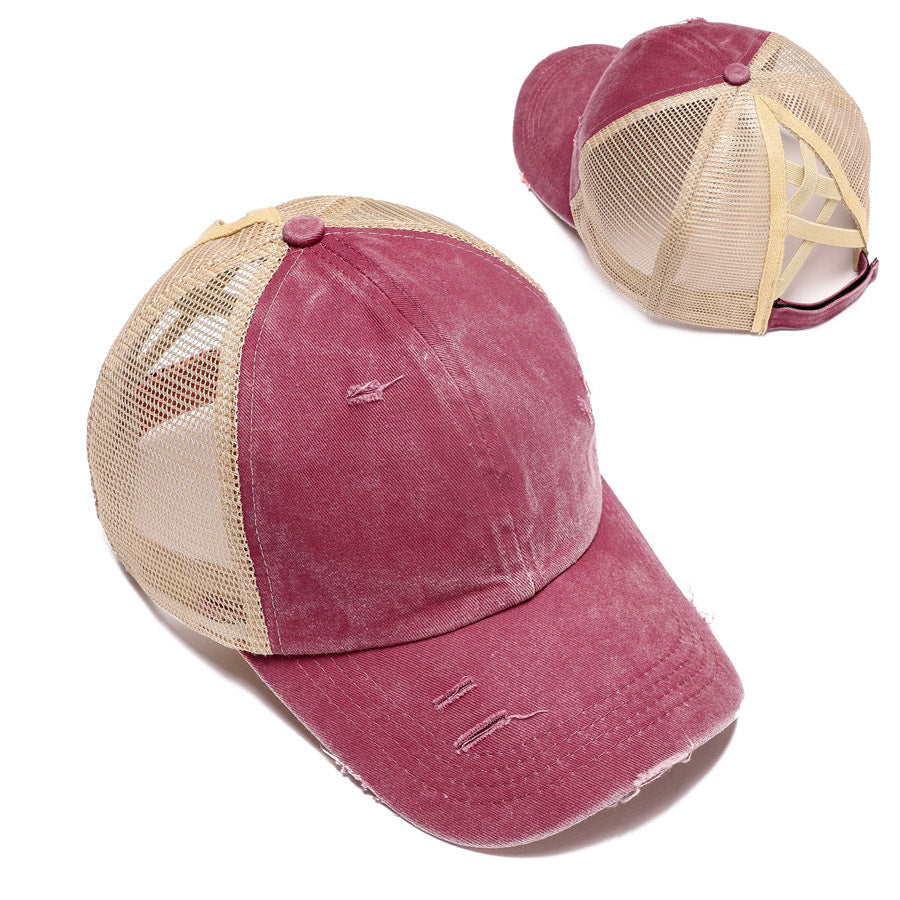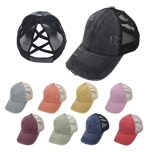 ¡Nuestra gorra de béisbol Mesh Cross Ponytail tiene una malla conveniente, lo que la hace perfecta para usar una coleta alta a la moda o un moño alto con comodidad y estilo!