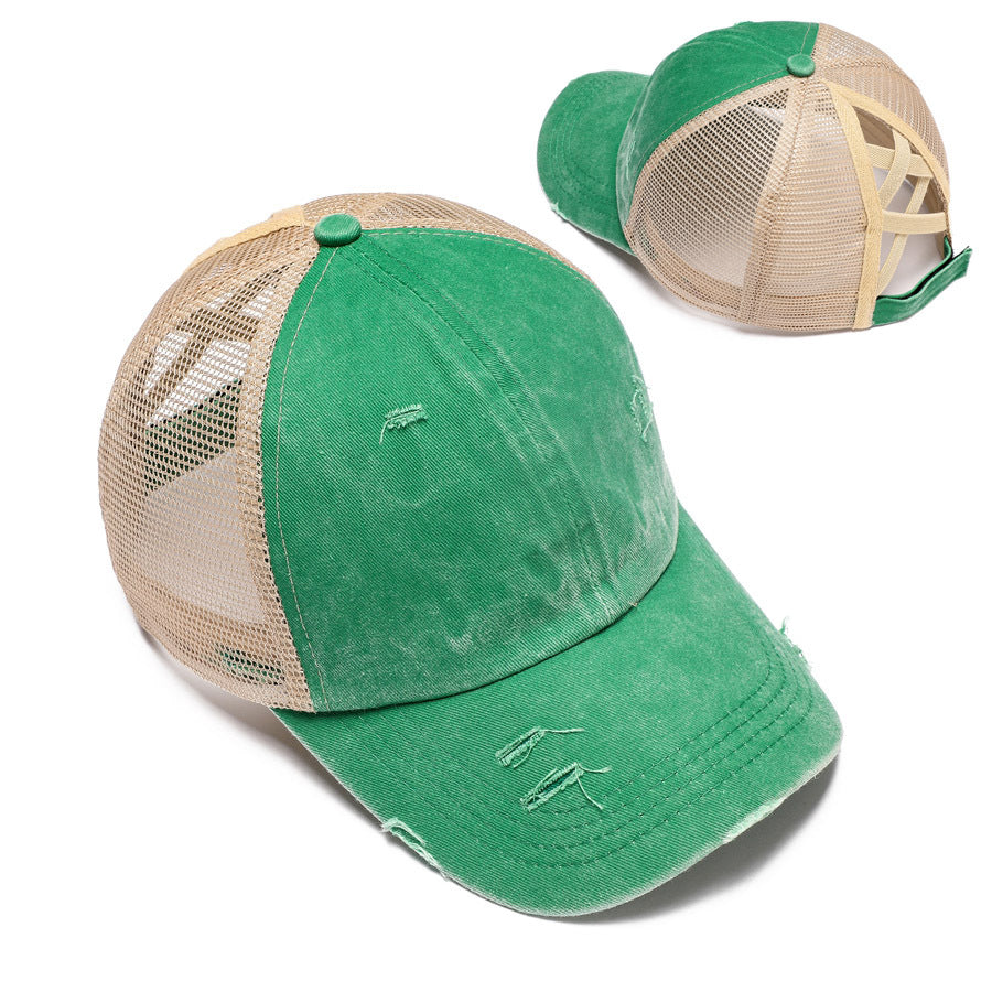 1 x Gorra de béisbol con cola de caballo cruzada de malla