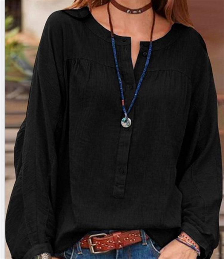 Blusa De Mujer Europea Y Americana, Color Sólido, Manga Larga, Tubo Abierto, Cuello Redondo, Camisa
