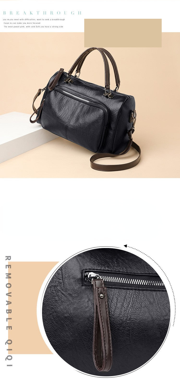 Este bolso está hecho de telas de alta calidad con una textura cómoda. La apariencia simple se combina con accesorios brillantes. Es suave al tacto. Definitivamente es una combinación de moda indispensable para el otoño.