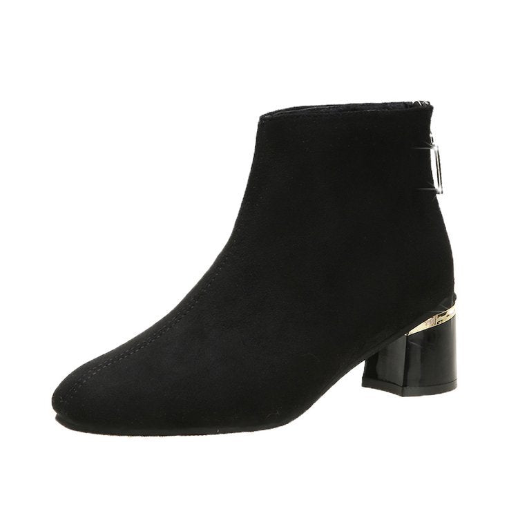 Botas De Mujer Con Cremallera Trasera Y Tubo Corto De Tacón Medio