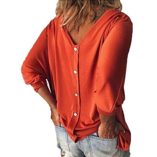 Botones traseros de manga 3/4 con cuello en V