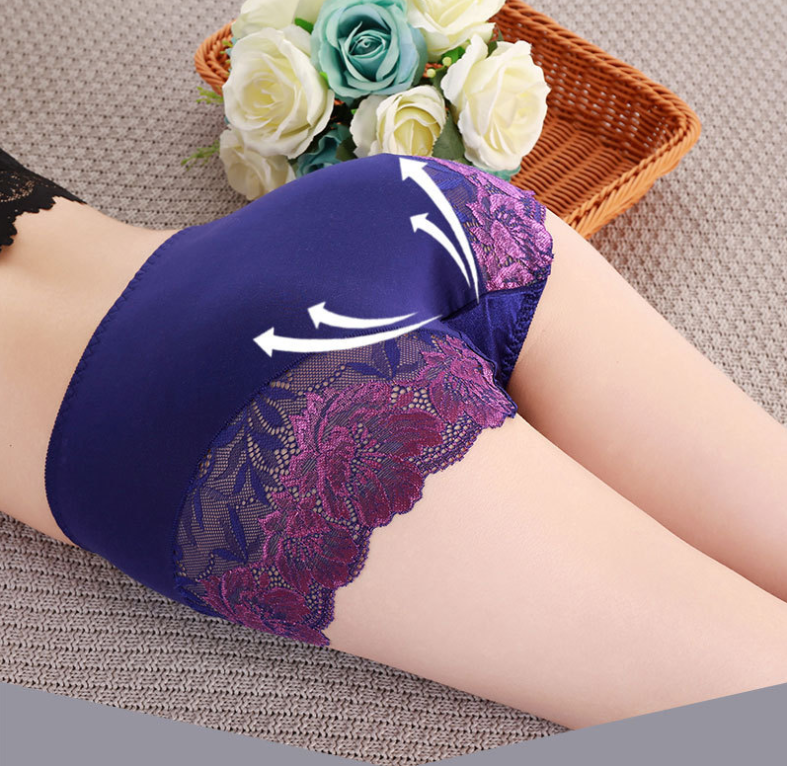 Braguita De Lino De Algodón Cómoda De Cintura Alta De Malla De Retazos De Encaje A La Cadera Completa