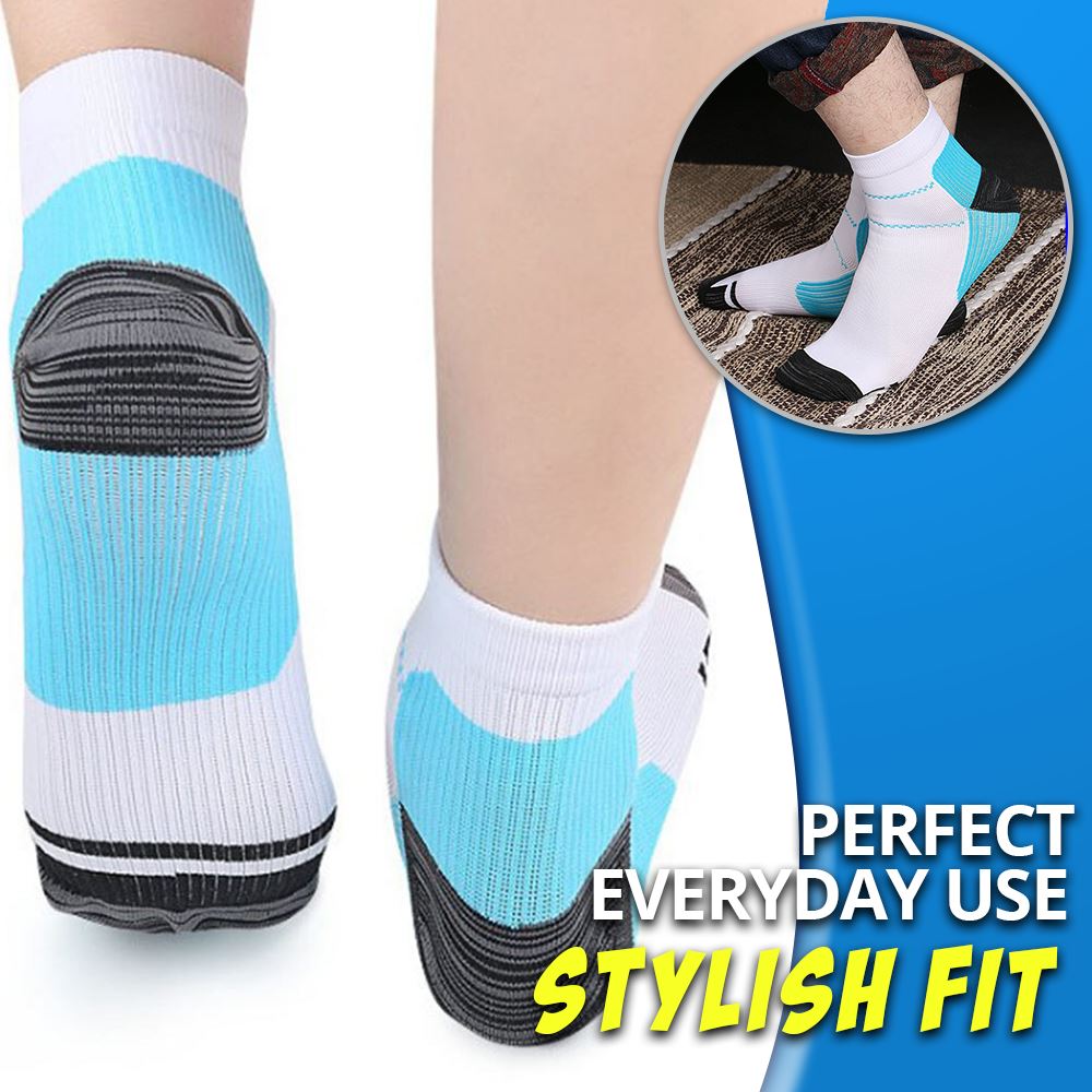 Estos calcetines de compresión de tobillo están diseñados para promover la circulación sanguínea y el flujo de oxígeno previniendo calambres, fatiga, hinchazón y ayuda en la recuperación muscular, fascitis plantar.