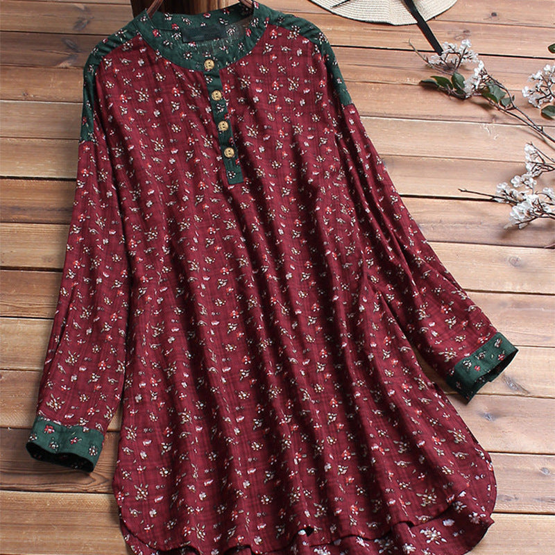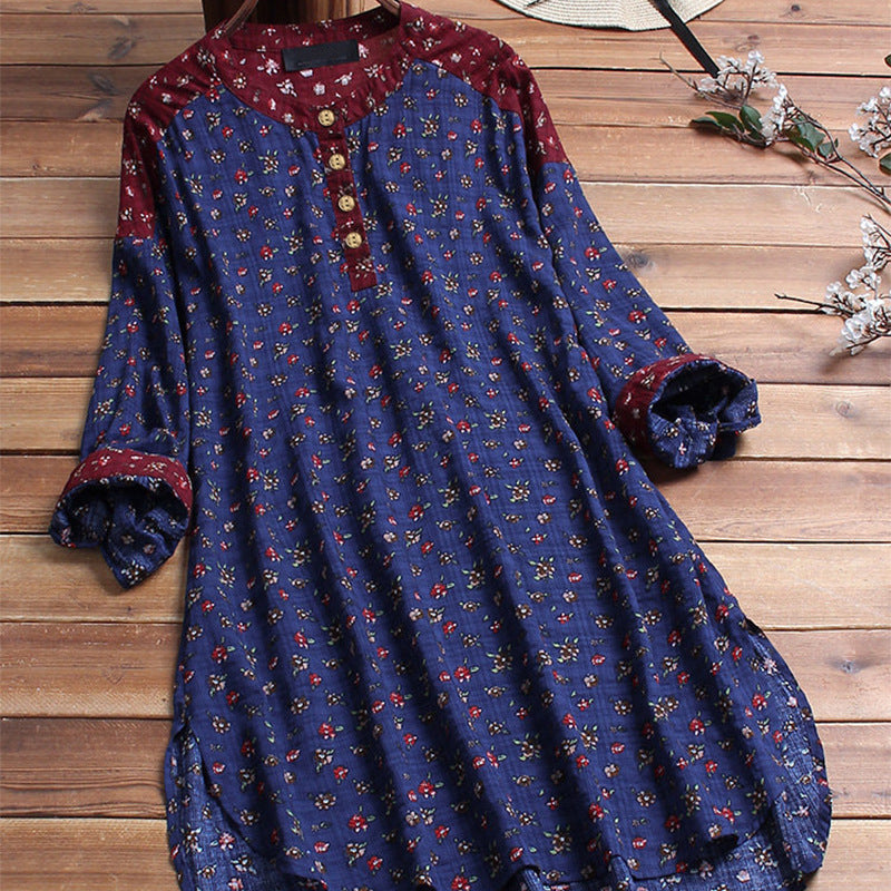 Camisa De Cuello Alto Estampada De Algodón Y Lino De Moda Camisa Suelta De Manga Larga De Gran Tamaño