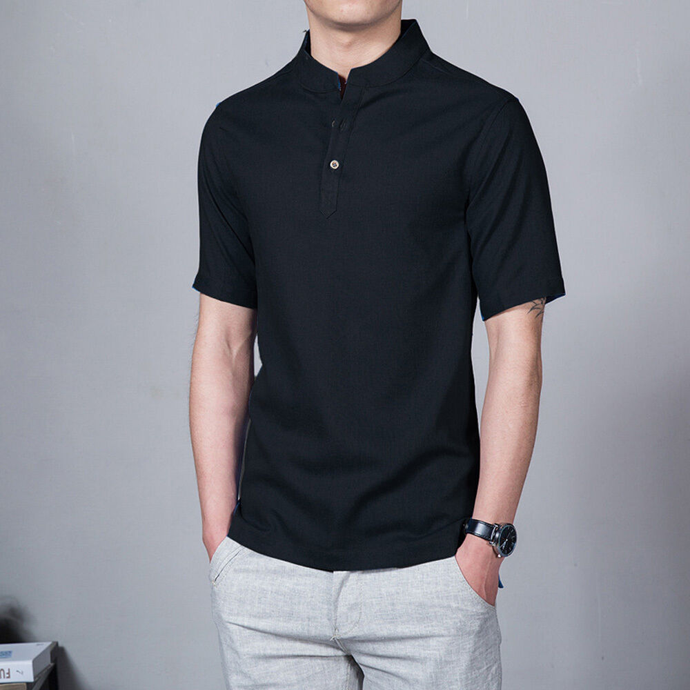 Camisa de lino con cuello de botones para hombre
