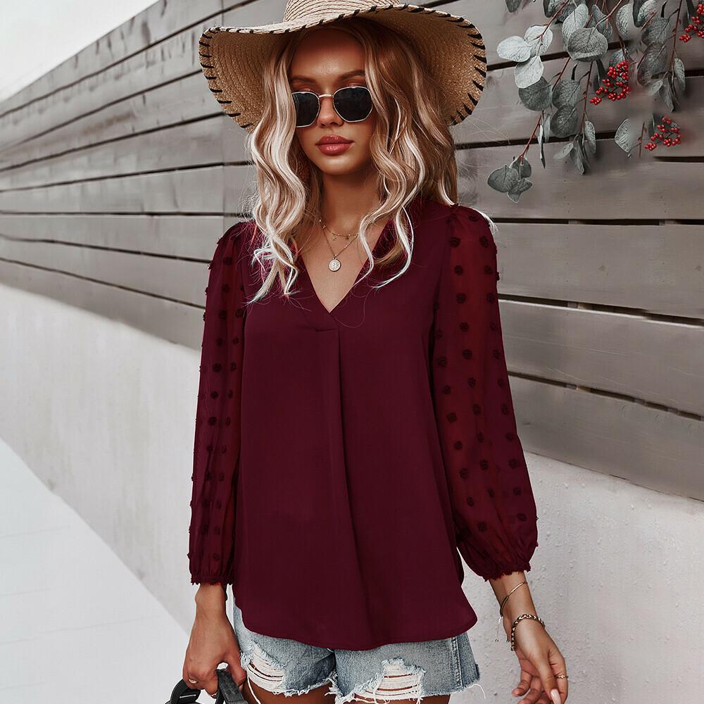 ¡Consigue esta moderna camisa con mangas de burbujas con cuello en V para la temporada!