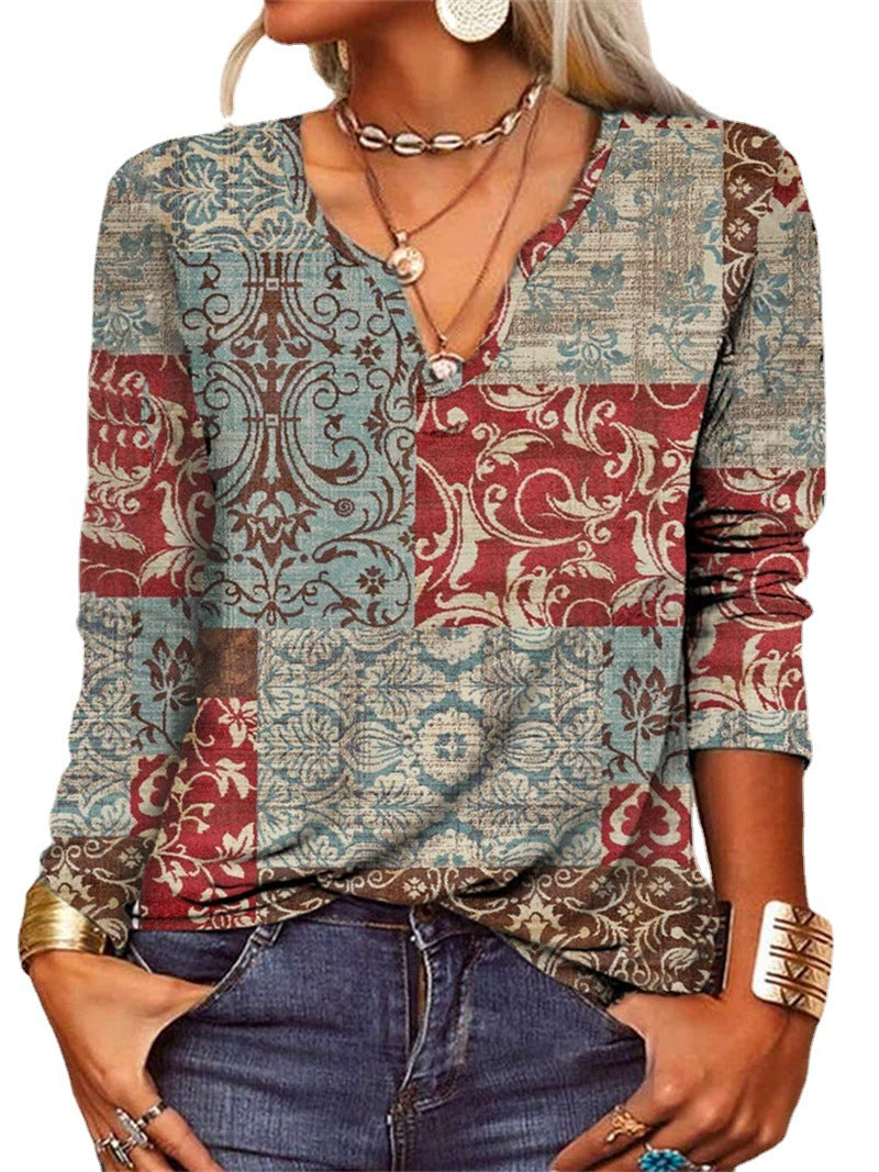 [W-Ropa] Camiseta De Cuello V De Manga Larga Suelta Huamang Camisa De Fondo Femenina