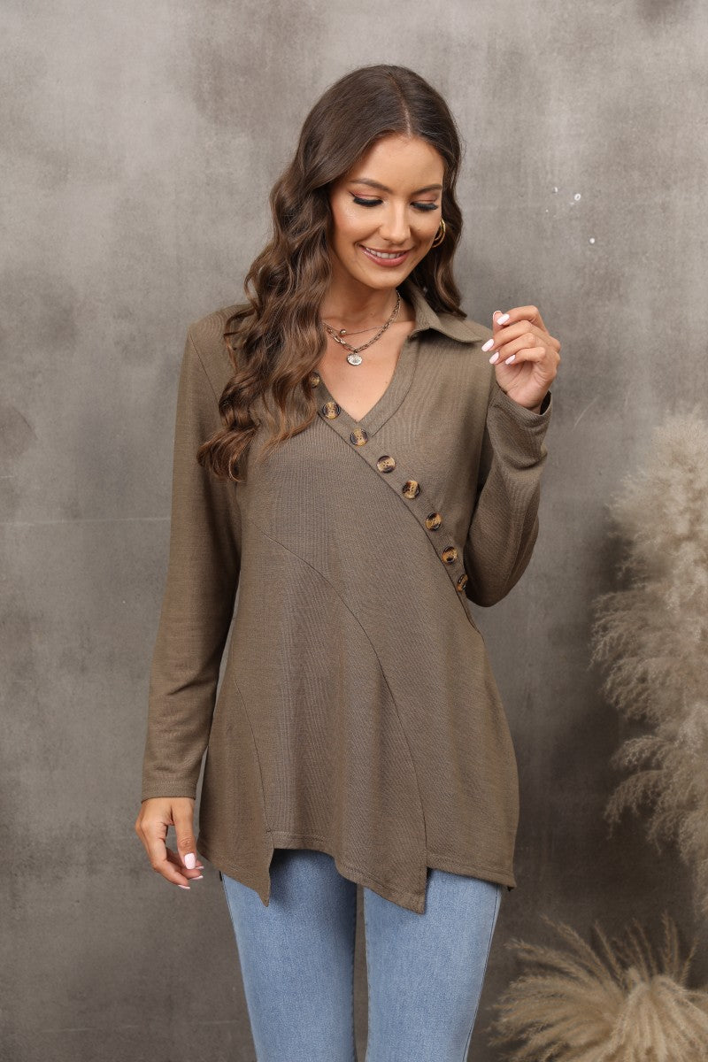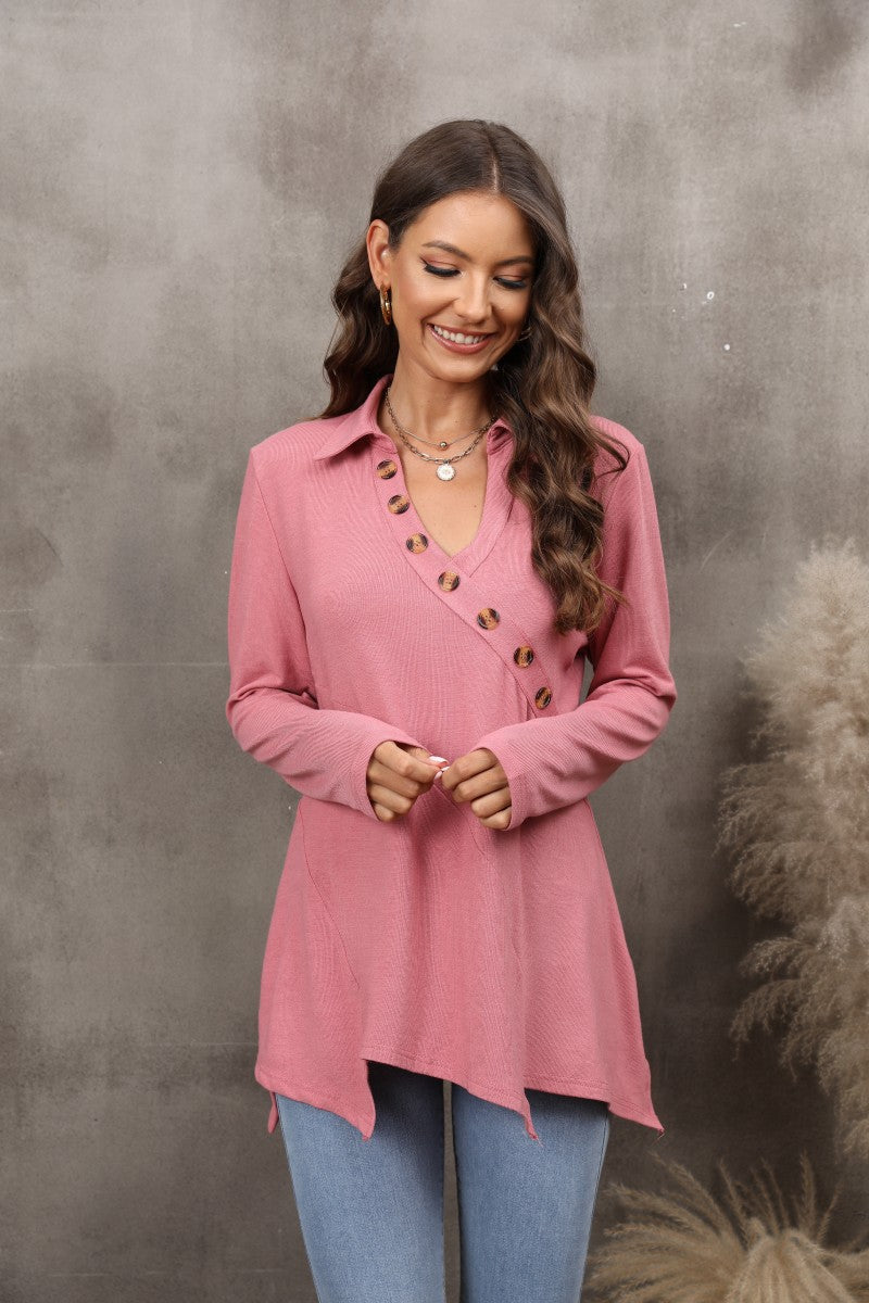 [W-Ropa] Camiseta De Manga Larga Con Solapa