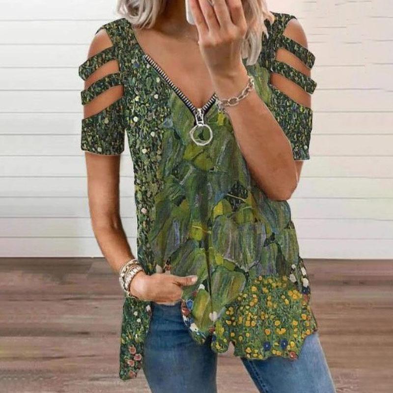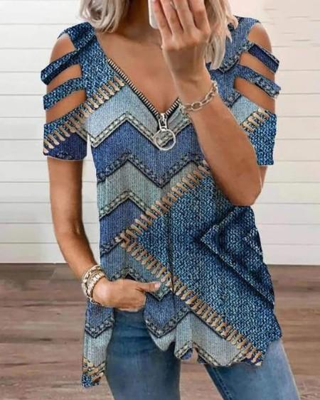 Camiseta con manga cortada en la parte delantera y cremallera en bloques de color