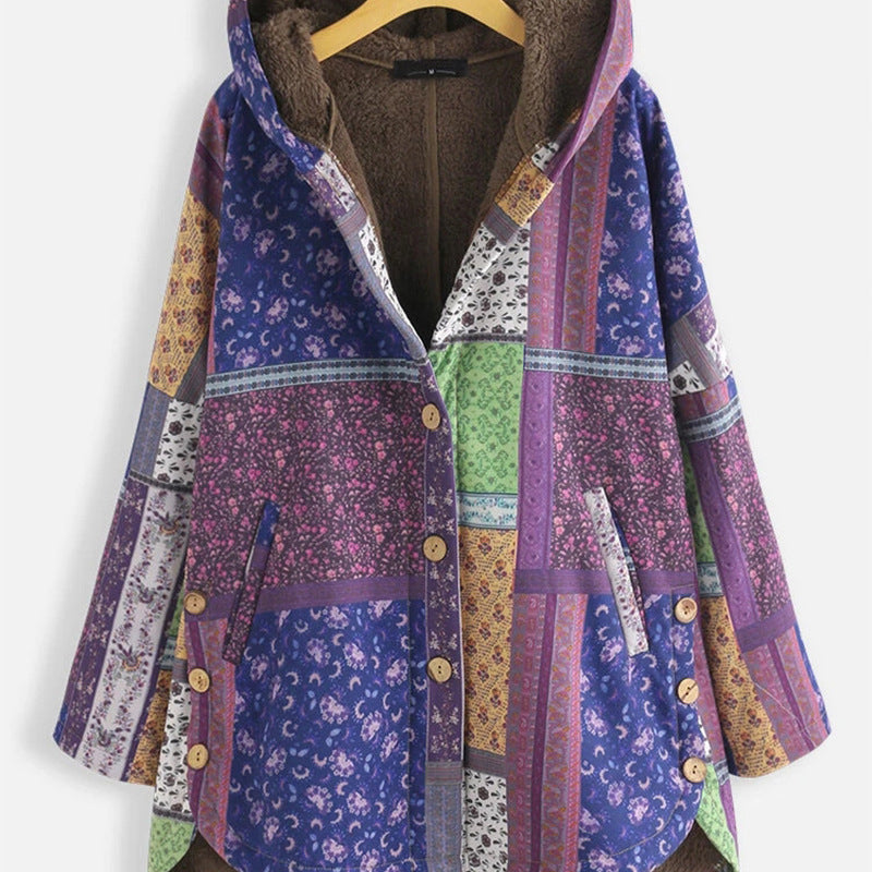 Chaqueta Acolchada De Estilo étnico Con Capucha Suelta Y Talla Grande Más Grueso De Terciopelo Para Mujer