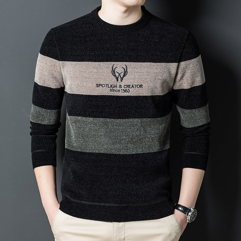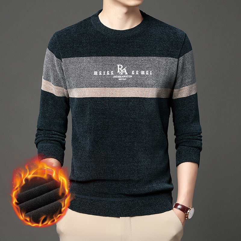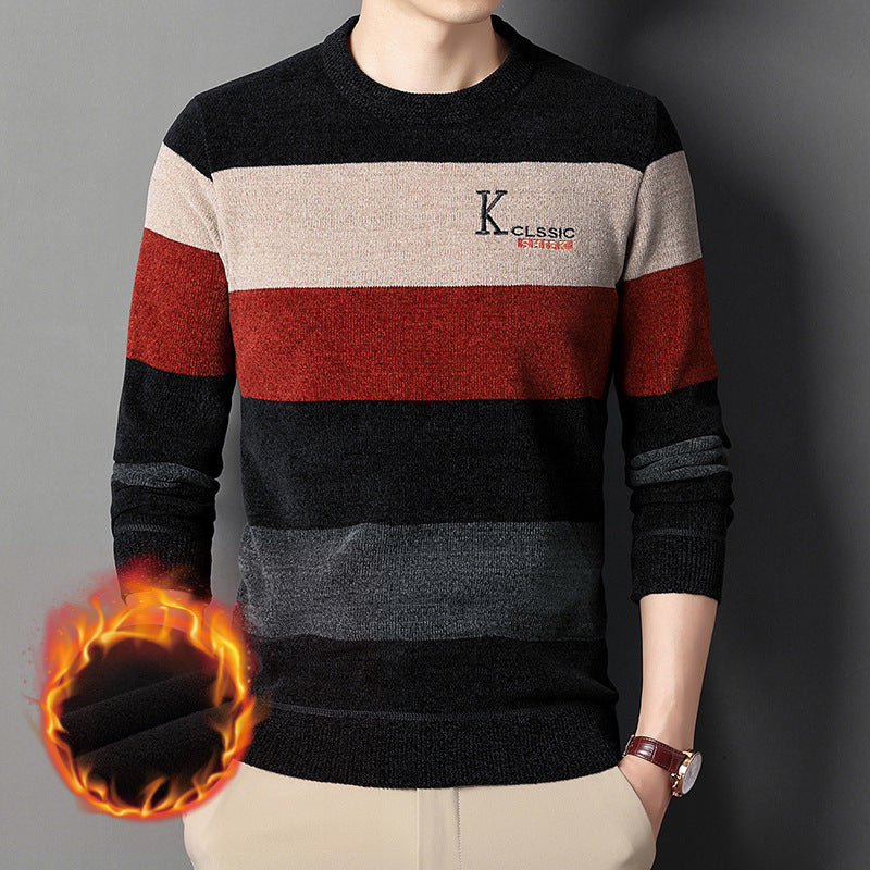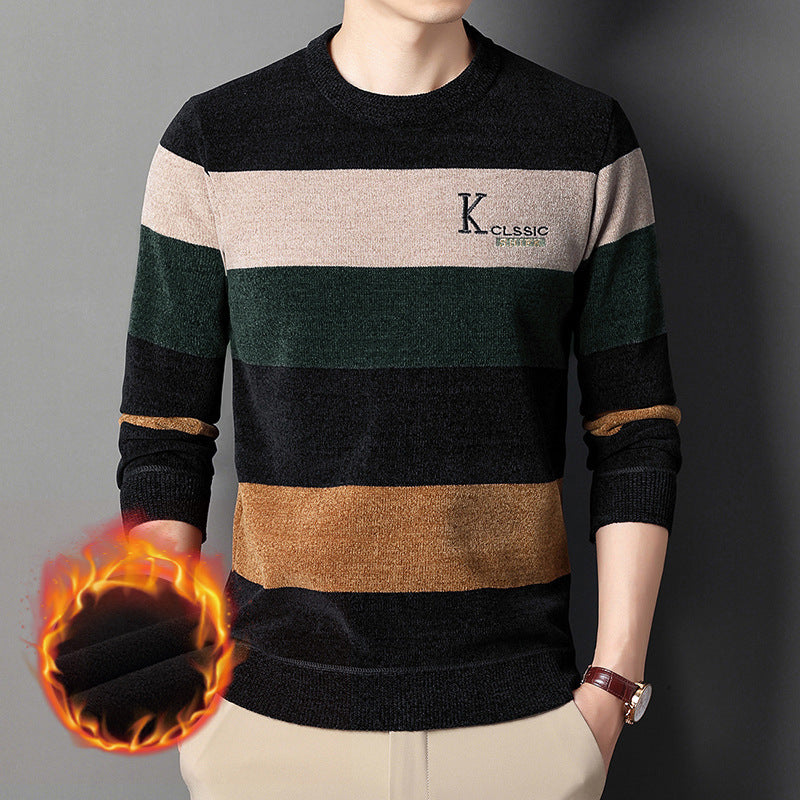 Chenilla Más Suéter De Terciopelo Suéter De Base A Juego De Color A Rayas Cálidas Para Hombres Invierno Más Engrosamiento De Terciopelo