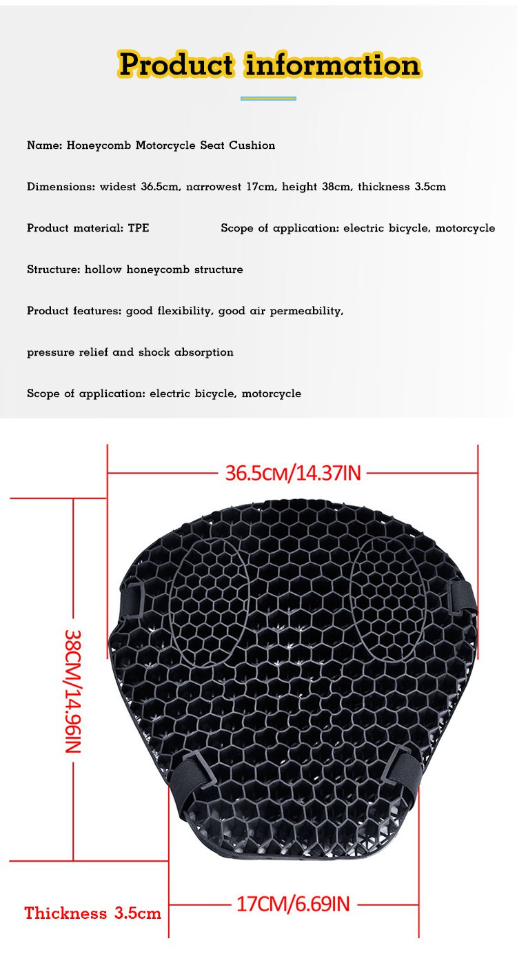 Cojín De Asiento De Motocicleta Transpirable Con Aislamiento Térmico De Verano En Panal 3D