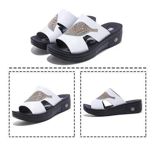 Elegantes Sandalias De Playa De Plataforma De Cuero