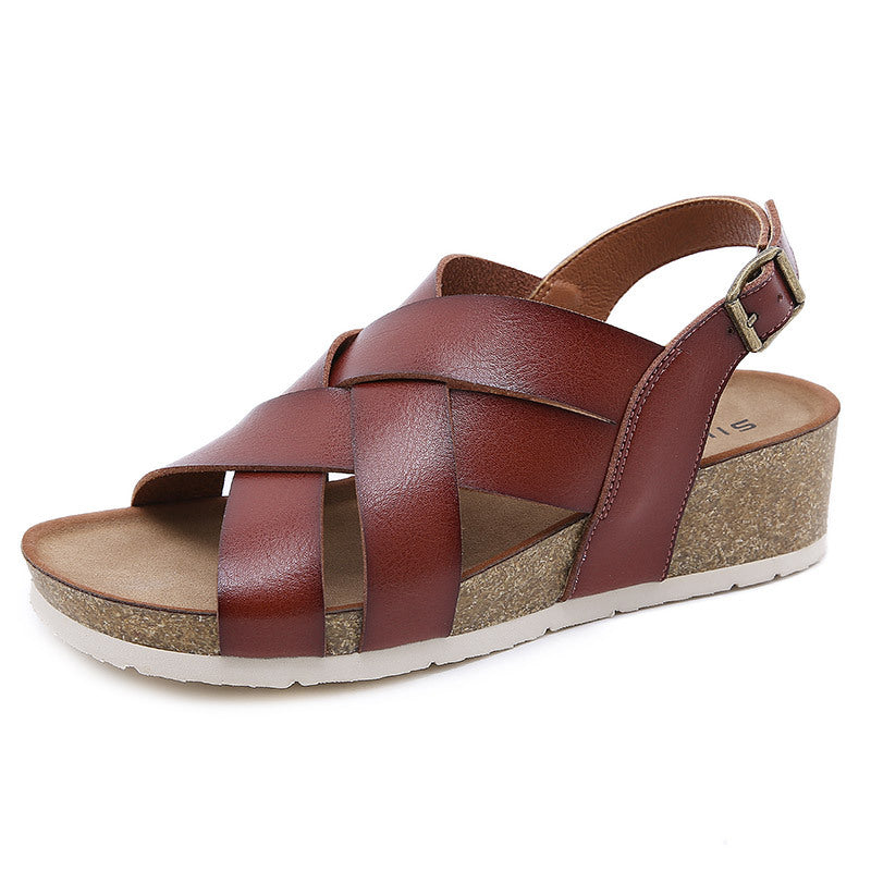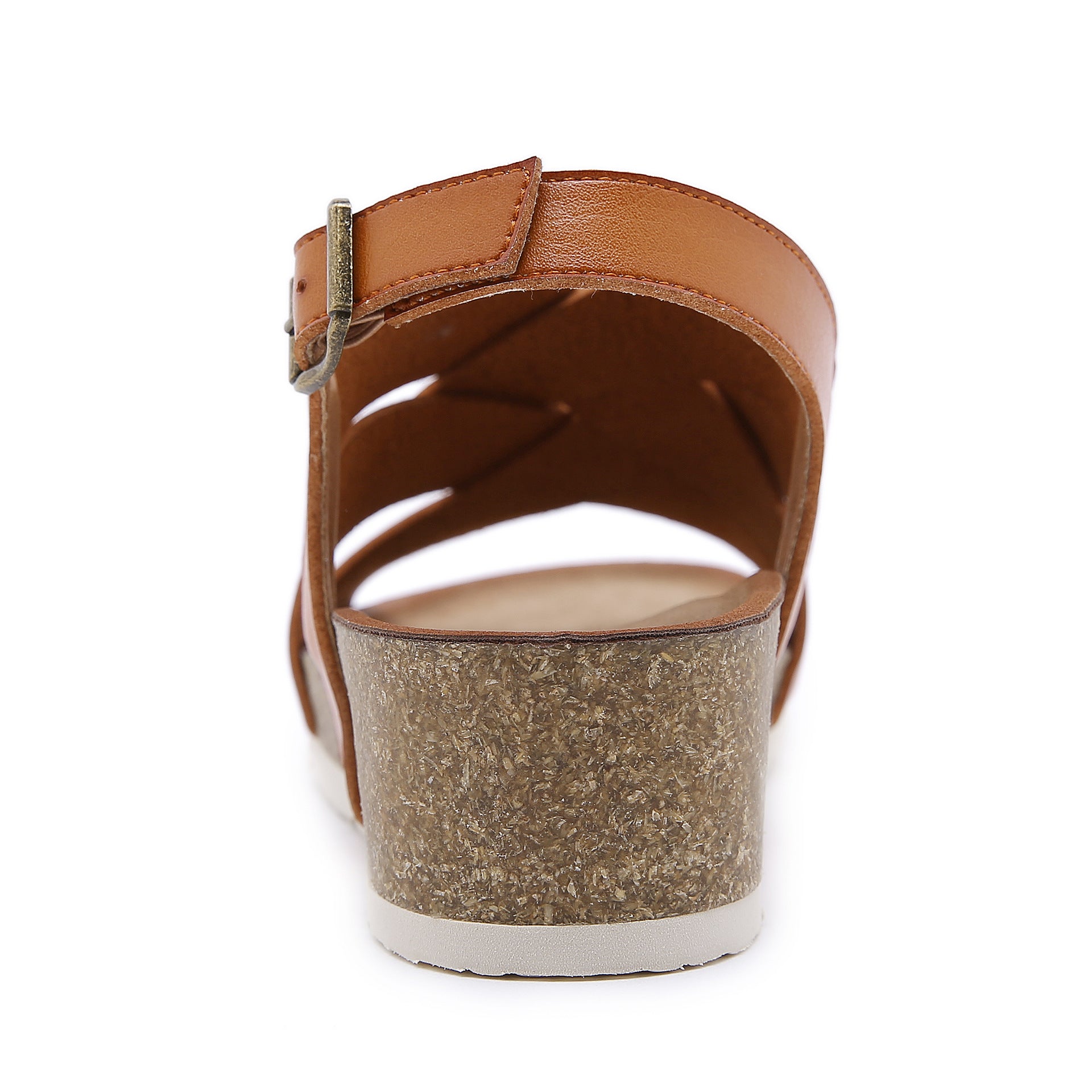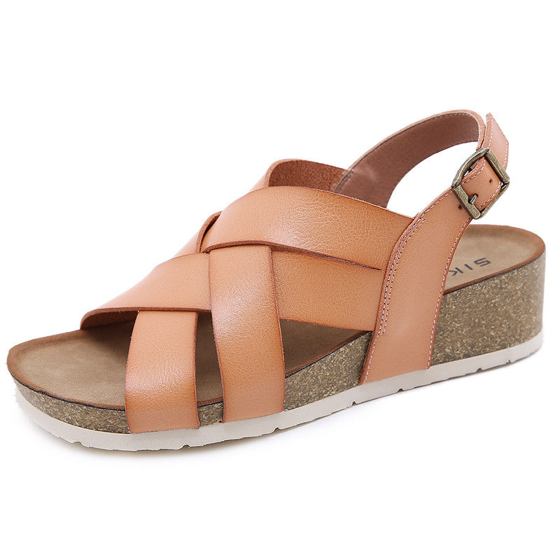 Cómodas Sandalias Romanas De Microfibra Antideslizante Con Hebilla De Metal Y Suela Cortada En Madera