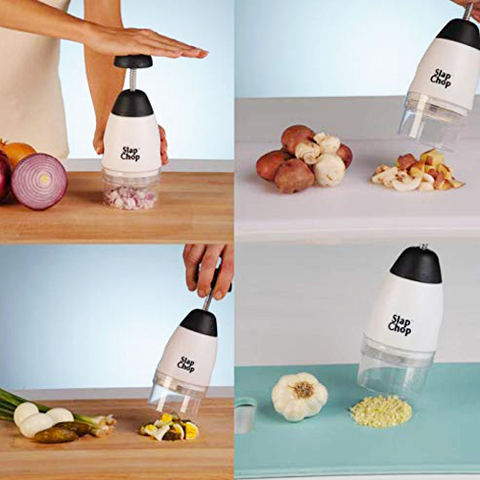 ORIGINAL SLAP CHOP: El corte de bofetada original es el helicóptero perfecto para picar y picar una variedad de ingredientes para una fácil preparación de la comida o toques finales. Es fácil de empujar hacia abajo mango permite cortes rápidas con casi ningún esfuerzo. Todos los pedidos vienen con el embalaje original.