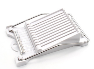 Diseñado con 10 alambre de acero inoxidable de corte, corte fácilmente 11 rodajas a la vez, todos iguales en tamaño, para una buena presentación e incluso cocinar. Fácil de usar, simplemente coloque el alimento en su lugar y empuje hacia abajo la barra hasta que esté completamente cortado.