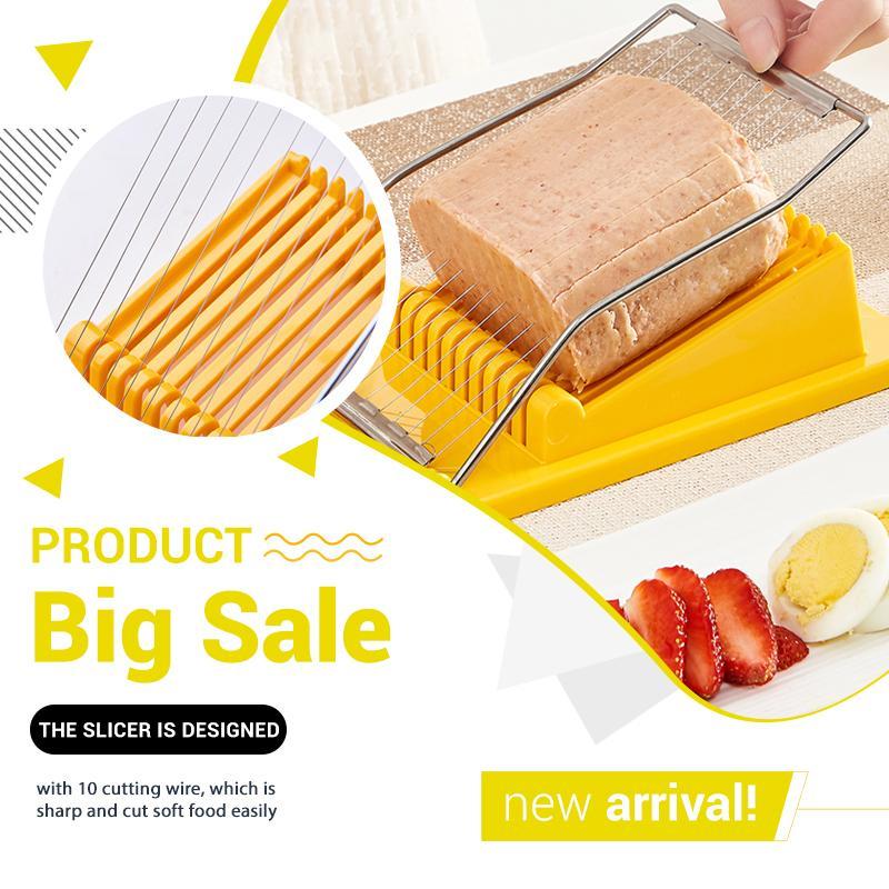 Funciona igual de bien para un huevo hervido, carne de almuerzo, pitaya pelada, kiwi pelado, jamón, etc. ¡Las posibilidades de lo que puedes cortar son infinitas! Haga deliciosas tostadas con carnes cortadas en frío y rodajas de queso suave. Rebana plátanos para ensaladas de frutas y postres. Rebanada de carnes asadas para platos impresionantemente servidos.