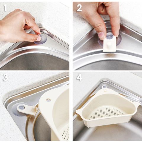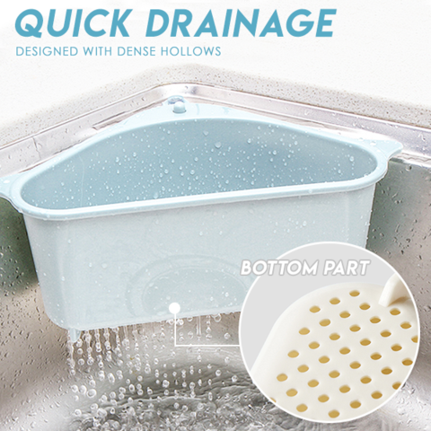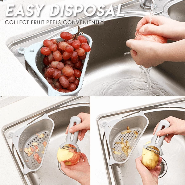 Libera espacio alrededor de la cocina y el área del fregadero con la ayuda de este Colador Triangular.