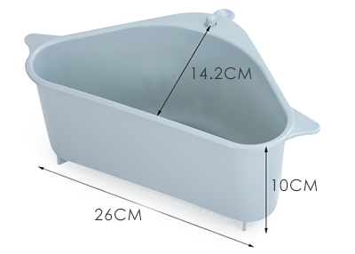 Con una estructura triangular compacta, este colador se adapta perfectamente a la mayoría de los fregaderos y a cualquier esquina. El espacio extra puede ser utilizado para varios propósitos - como un estante de herramientas de limpieza para sostener jabones de platos, esponjas, fregadores y así sucesivamente. O como una cesta de frutas, simplemente almacena frutas y verduras al alcance de la mano.