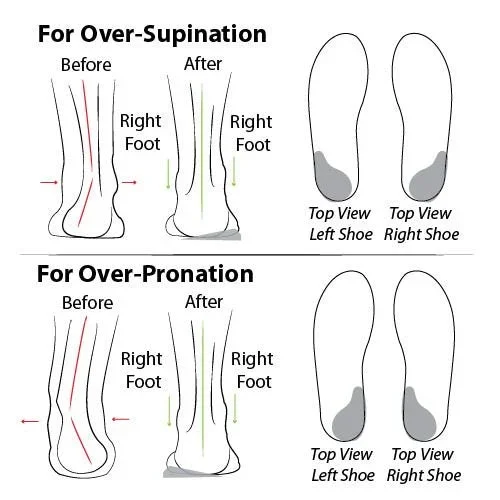 - Corrección de postura: corregir las caderas, corregir las patadas y los desequilibrios musculares ajustando la estructura de los pies.
