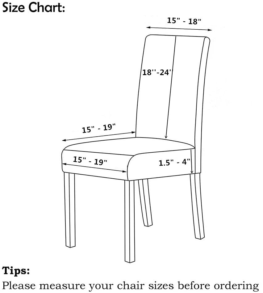 - Se estira para caber sobre el asiento y el respaldo de la mayoría de las sillas de comedor y banquetes estándar. Mida con anticipación para garantizar el mejor ajuste antes de la compra.