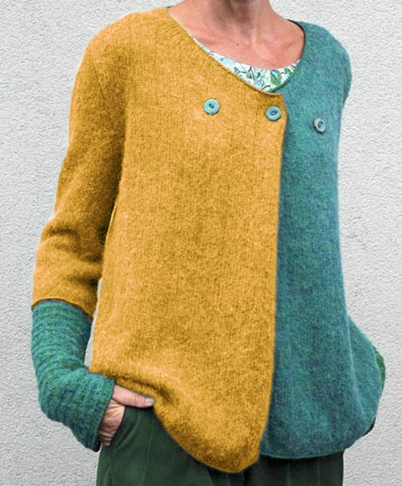 Jersey De Punto De Costura Con Botones En La Parte Superior Suéter Con Cuello En V Mujer