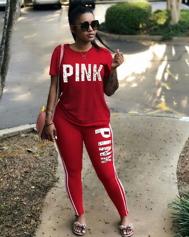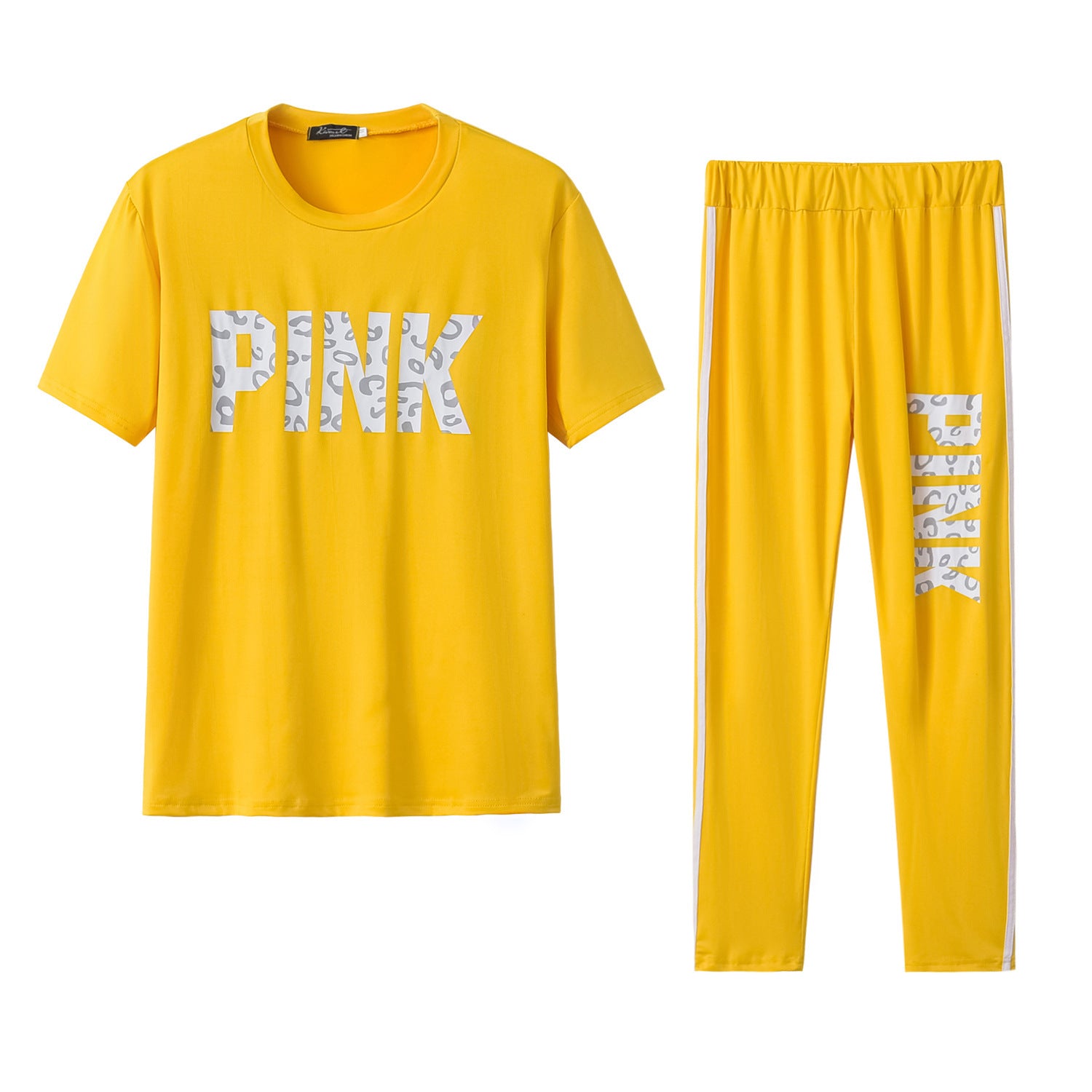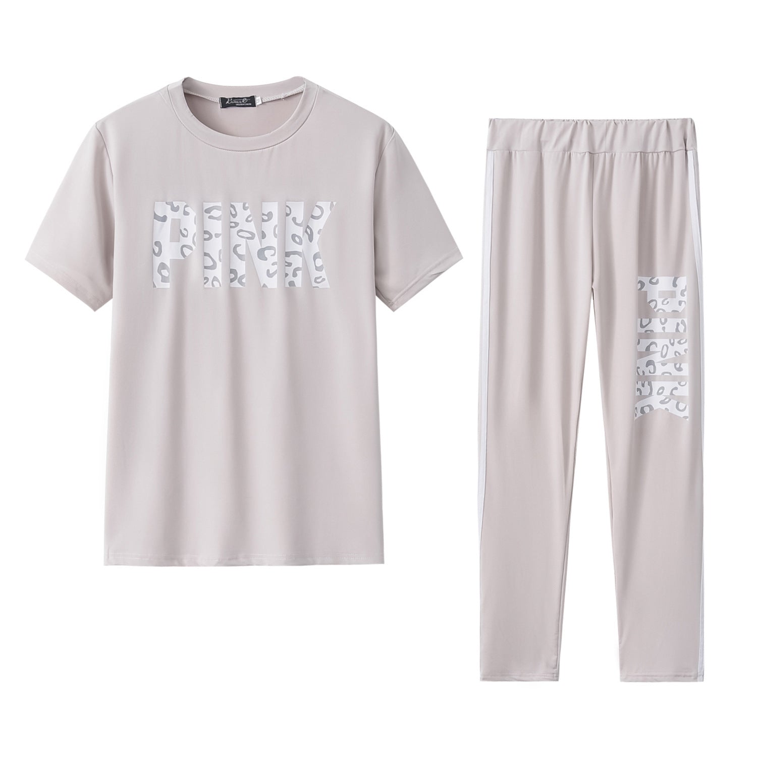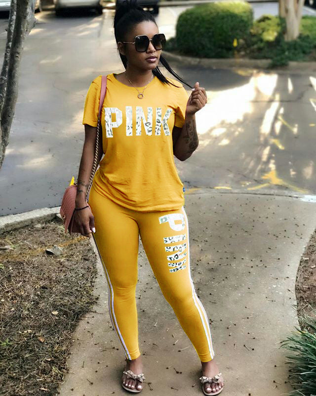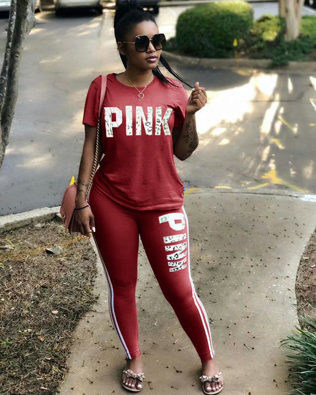 JUEGO DE DOS PIEZAS CASUAL DE MANGA CORTA STRIPE IMPRESO EN LETRA