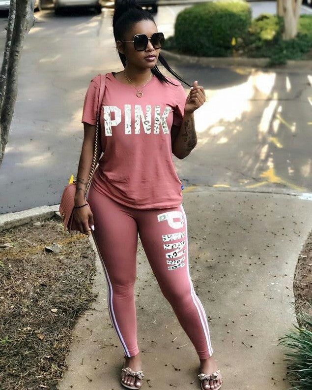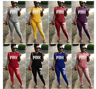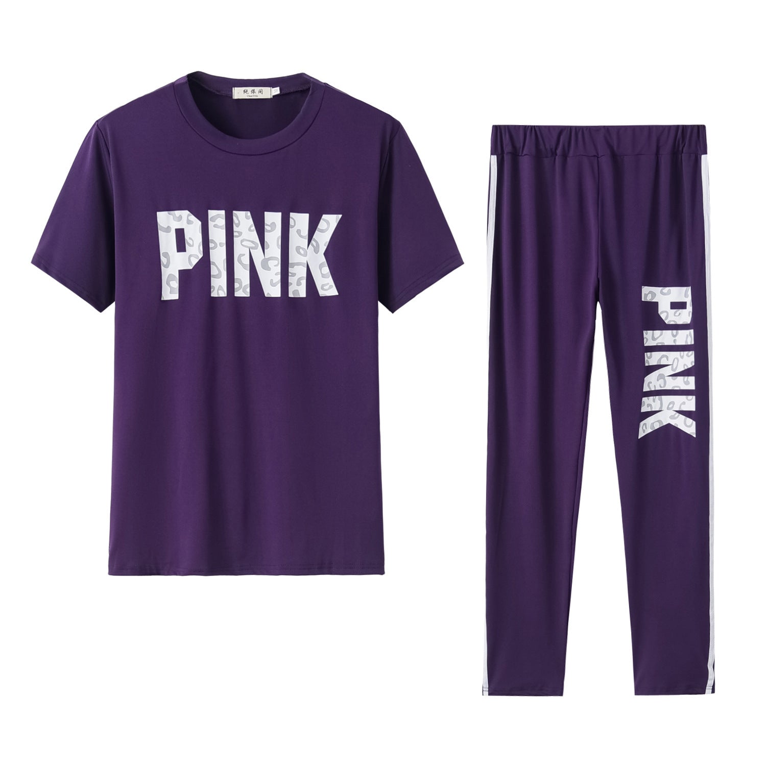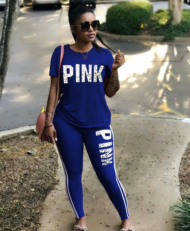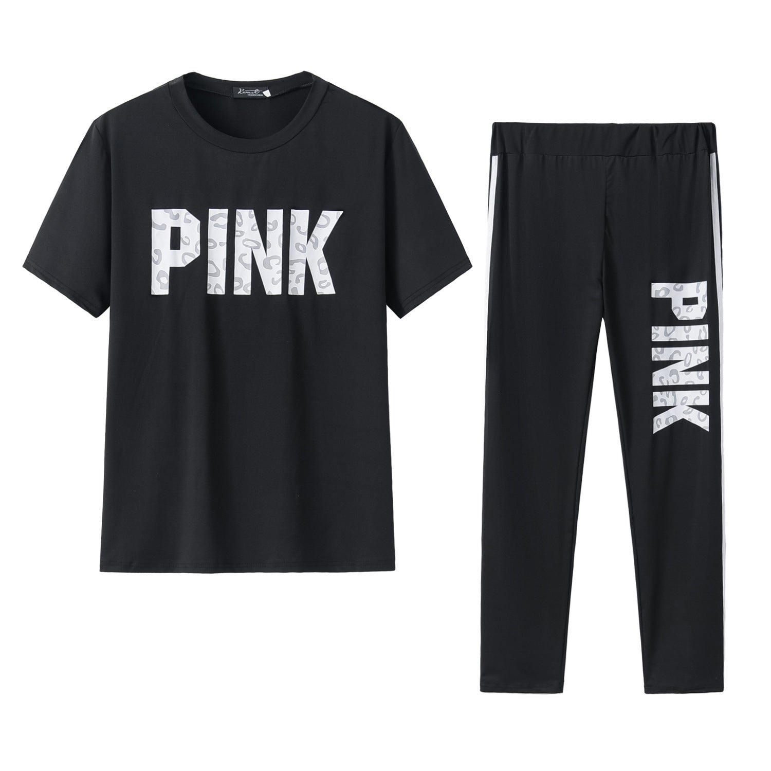 JUEGO DE DOS PIEZAS CASUAL DE MANGA CORTA STRIPE IMPRESO EN LETRA