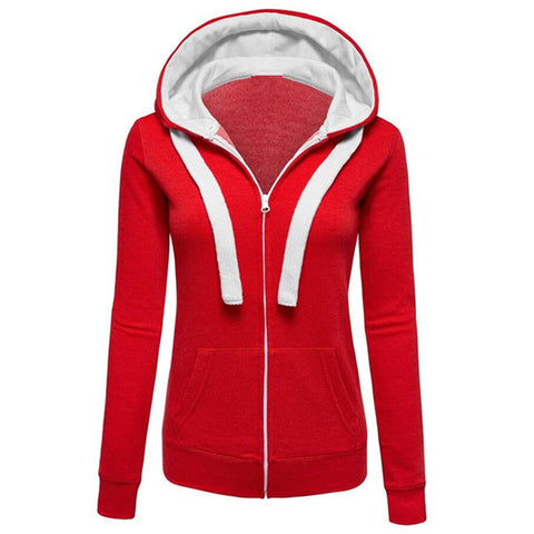 La capucha de las mangas largas con cremallera de color liso para mujeres