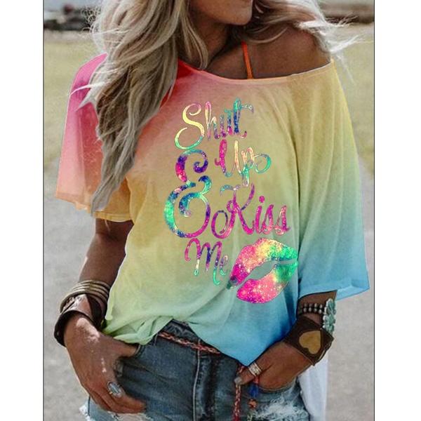 ¡VENTA! Media manga sin hombros, estampado en color, degradado de moda