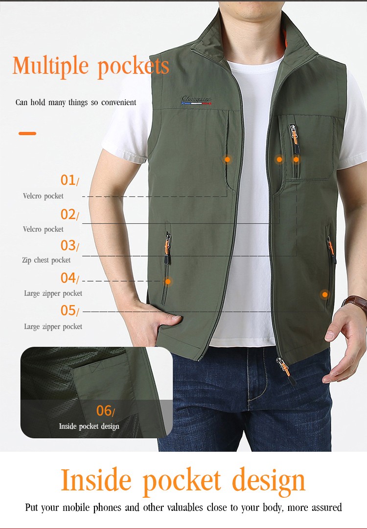 [M-Ropa] Chaleco Multibolsillos De Secado Rápido